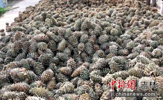 在這豐收的季節(jié)里,除了金黃的田野,山林間也迎來(lái)了另一番收獲的景象——打松塔。走進(jìn)延吉市三道灣鎮(zhèn)平崗村李永軍的院子,院子里鋪滿了剛打下來(lái)的松塔,空氣中彌漫著淡淡的松香。綠油油、飽滿壯實(shí)的松塔像一顆顆沉甸甸的小寶石,閃爍著秋日的光澤,也映照出一年辛勤勞作的成果。