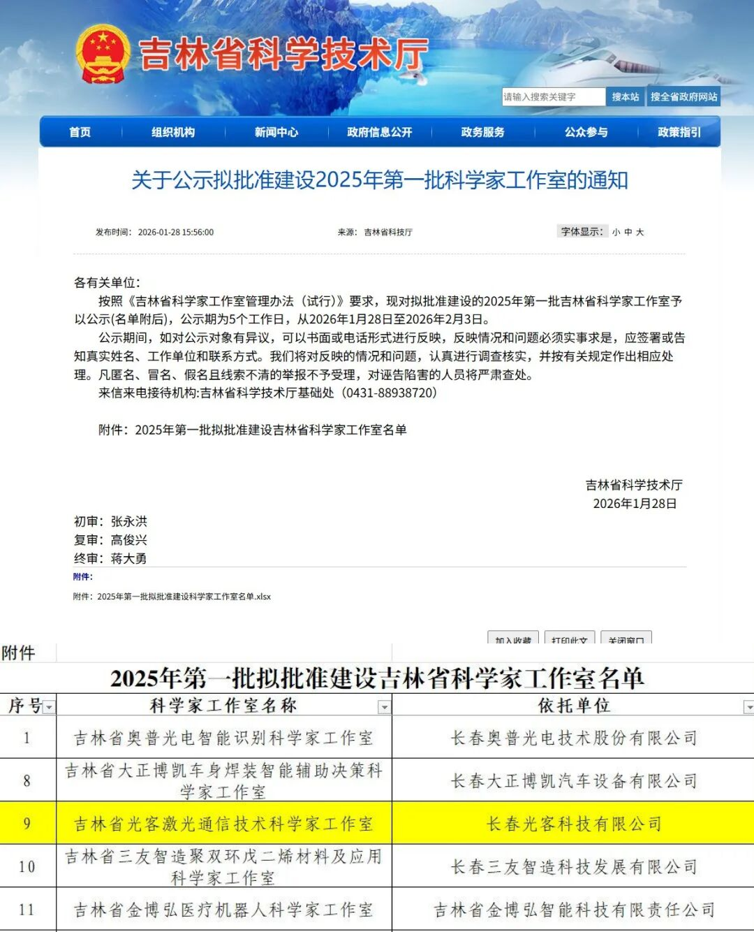 長春光客科技有限公司獲批“吉林省科學家工作室”