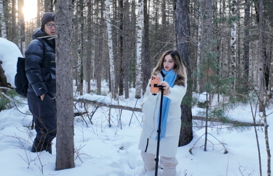 12月20日,國際媒體采風(fēng)團一行走進長白山聚龍火山石林體驗雪谷穿越,3.1公里的徒步路線上,火山浮石覆雪而立,溪水潺潺在白雪間流過,原生態(tài)森林雪景讓采風(fēng)團成員不時駐足驚嘆,快門聲此起彼伏。