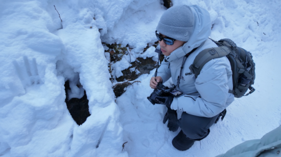 深入雪谷腹地,采風(fēng)團一行涉入尚未冰封的溪水,手扶古木,沿溪而行!斑@種體驗太美好了,在滿是積雪的森林深處行進,感覺太奇妙了。”美國網(wǎng)絡(luò)博主于中美驚嘆道。