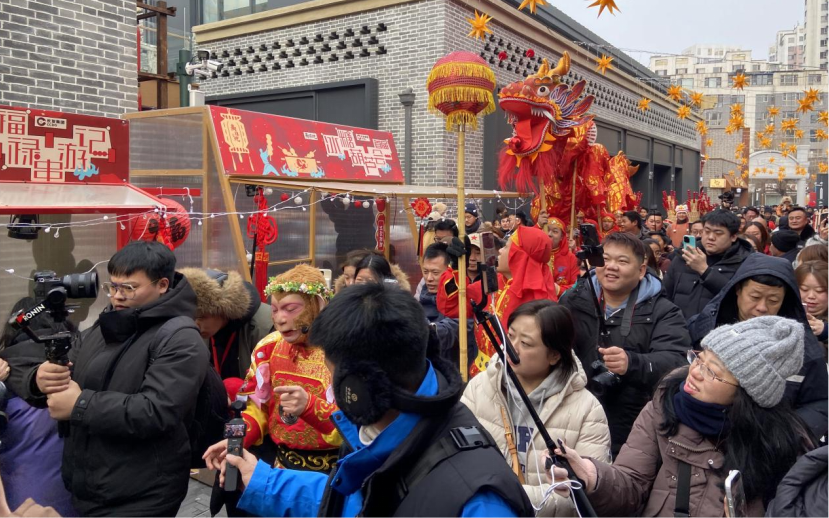 當日舉行的巡游活動將氣氛推向高潮。由雪餅猴、舞龍舞獅、糖葫蘆NPC、二次元、瘋狂動物城等角色組成的多元方陣,沿著主街歡樂行進。