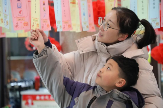 大劇院門前“喜樂(lè)元宵 新春送!辈聼糁i活動(dòng)融合游戲互動(dòng)、青年快閃、網(wǎng)紅打卡、志愿服務(wù)等元素,全民猜謎贏好禮,趣味十足。