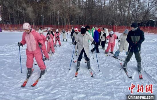 研學(xué)團(tuán)成員在長(zhǎng)春凈月潭體驗(yàn)滑雪樂趣!〖质∥穆脧d供圖