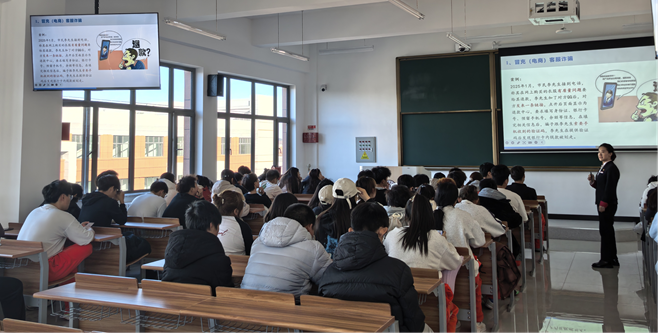 活動(dòng)現(xiàn)場(chǎng),臨河街支行的工作人員結(jié)合高校校園詐騙的高發(fā)特點(diǎn),以通俗易懂的語言為師生們帶來了一場(chǎng)干貨十足的反詐宣講。宣講環(huán)節(jié)中,工作人員首先從“什么是電信網(wǎng)絡(luò)詐騙”切入,系統(tǒng)講解了電信網(wǎng)絡(luò)詐騙的定義、常見類型及隱蔽性、迷惑性特點(diǎn),讓師生們對(duì)這類違法犯罪行為建立起清晰認(rèn)知。隨后,通過“以案說詐”的形式,工作人員選取了近年來高發(fā)的校園貸、刷單返利、冒充老師同學(xué)借錢、虛假購物退款等典型詐騙案例,深入剖析了詐騙分子的作案手法、話術(shù)陷阱以及受害者的受騙心理,用真實(shí)案例敲響安全警鐘,讓師生們直觀感受詐騙的危害性。