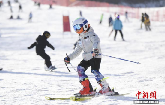 吉林霧凇冰雪節(jié)開幕當天,游客在中旅松花湖滑雪場暢滑!∈橛 攝