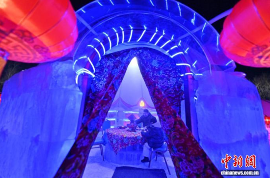 2月4日,在吉林長春世界雕塑園內,一座晶瑩剔透的冰屋中熱氣繚繞,來自上海的游客圍坐在冰桌前,品嘗著沸騰的火鍋,親身體驗“冰火兩重天”的奇妙感受!埇 攝