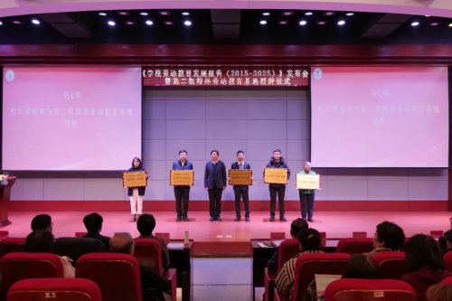 校長(zhǎng)潘福林為各基地單位代表授予授牌。此次新增授牌基地涵蓋“紅色勞動(dòng)傳承、鄉(xiāng)村振興實(shí)踐、智能勞動(dòng)體驗(yàn)、志愿服務(wù)實(shí)踐、非遺文化傳承”五個(gè)類別,將進(jìn)一步拓寬勞動(dòng)教育實(shí)踐邊界,為學(xué)生提供“在田間地頭學(xué)勞動(dòng)、在工廠車間悟技能、在紅色沃土鑄信念”的多元化場(chǎng)景。