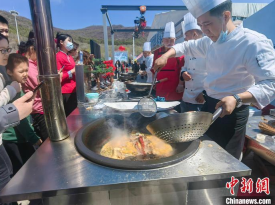 廚師現(xiàn)場(chǎng)制作開江魚邀游客品嘗。 石洪宇/攝