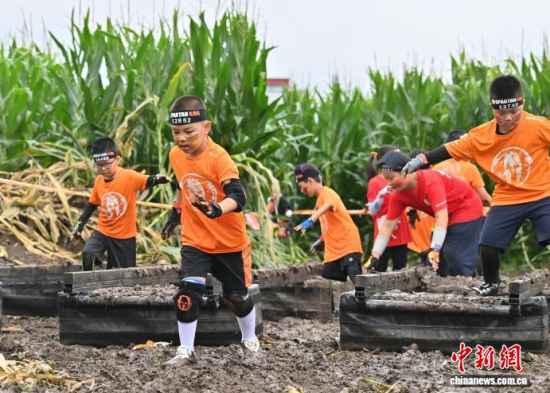 7月25日,2025斯巴達(dá)勇士?jī)和愰L(zhǎng)春站在卡倫湖力旺實(shí)驗(yàn)學(xué)校開賽。當(dāng)天大雨傾盆,參賽的小選手們熱情不減,紛紛化身“小勇士”,在泥濘的賽道上勇闖障礙、攀爬坡道。圖為參加斯巴達(dá)勇士?jī)和惖倪x手在比賽中。中新社記者 張瑤 攝