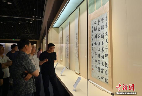 9月10日,參觀者在位于吉林省長春市的吉林省博物院參觀董其昌的《戲鴻堂雜書冊》。近日,“吉林省博物院藏明清書法精品展”在長春開展,此次展覽遴選該院所藏明清書法精品五十余件,均為珍貴文物。展覽不僅系統(tǒng)梳理了明清兩代書法藝術(shù)的發(fā)展脈絡(luò),更是對中華優(yōu)秀傳統(tǒng)文化的傳承與弘揚。中新社記者 張瑤 攝