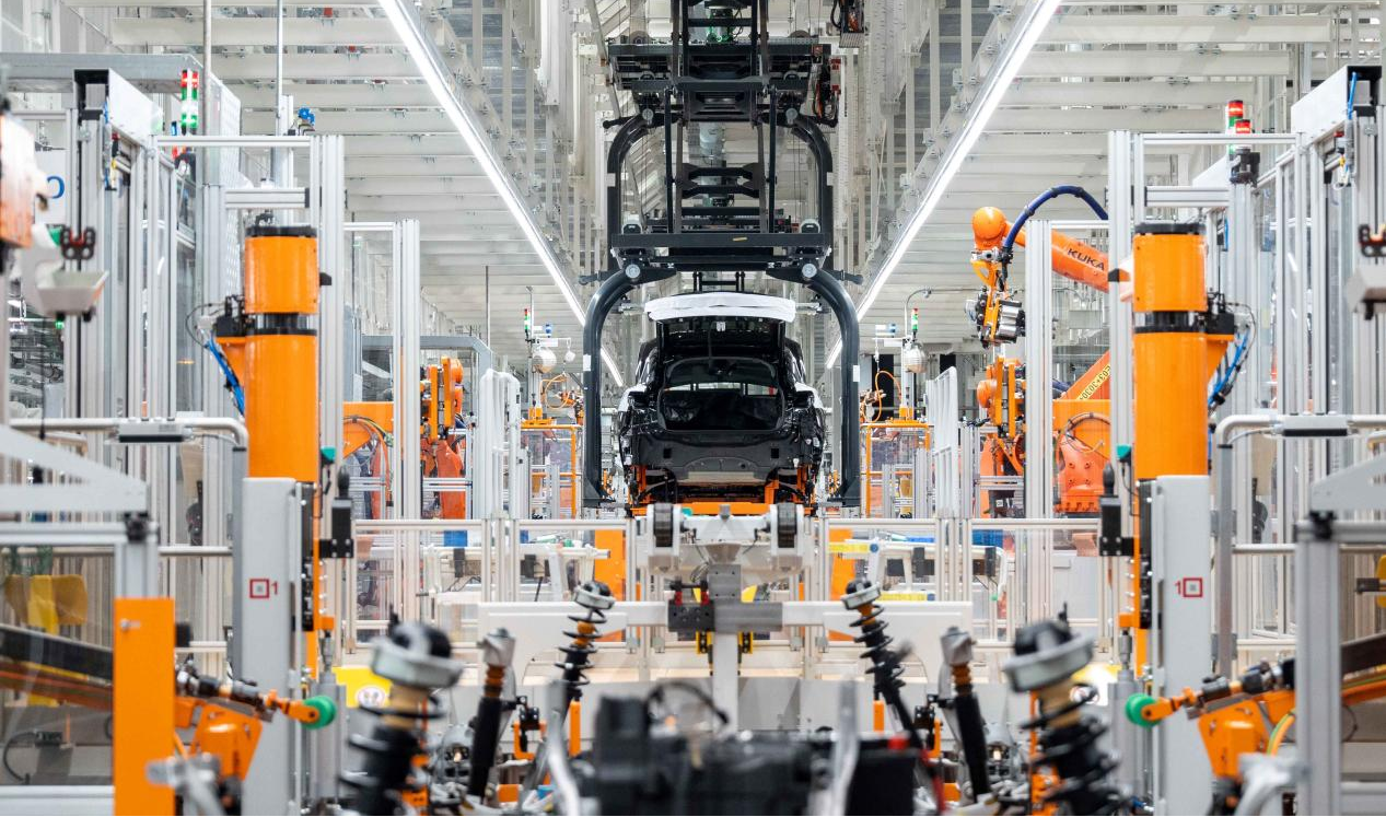 全域IT架構(gòu)的引入,使得所有設(shè)備、流程和數(shù)據(jù)在云端互聯(lián)互通。最直觀的體現(xiàn)是在焊裝車間,824臺(tái)機(jī)器人協(xié)同作業(yè),焊接自動(dòng)化率達(dá)到100%,每輛車的4000多個(gè)焊點(diǎn)全部由機(jī)器人精準(zhǔn)完成。總裝車間視覺檢測系統(tǒng)通過20臺(tái)高精度相機(jī)進(jìn)行3D激光與2D光譜交叉掃描,將裝配質(zhì)量檢測精度提升至0.2毫米。