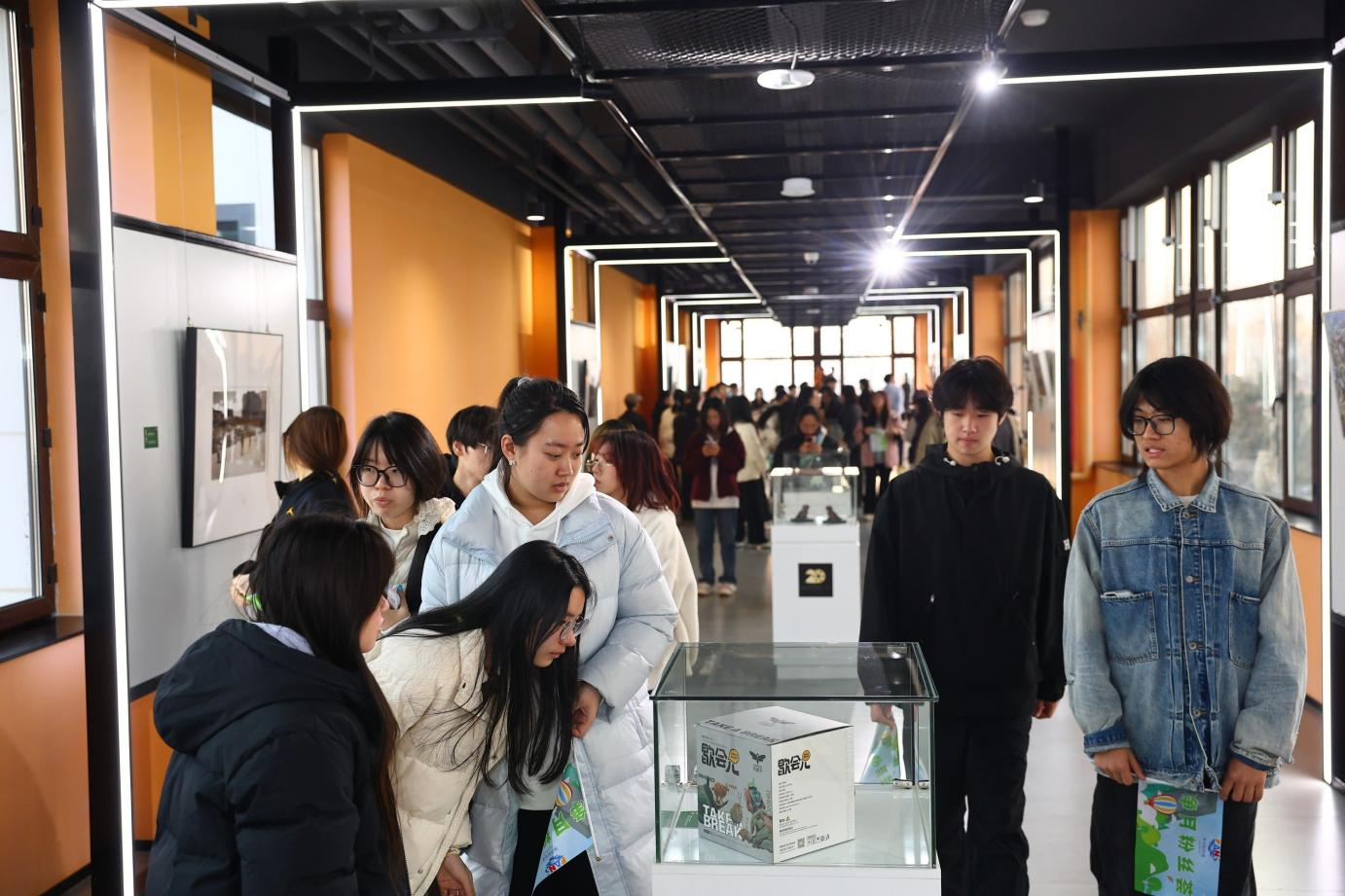 青年粉絲參觀影視文創(chuàng)孵化園區(qū)內(nèi)展示的作品。