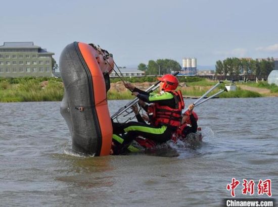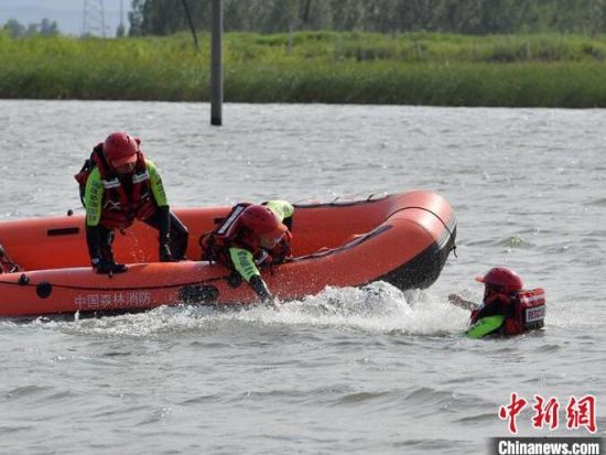 森林消防員正在進行舟艇駕駛操作。 森林消防員正在進行水上救援科目訓練。 森林消防員正在進行水上救援科目訓練。 森林消防員正在進行翻舟自救科目訓練。 森林消防在水面上進行無動力劃艇。