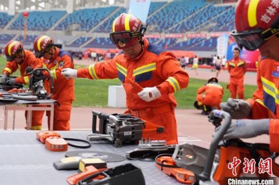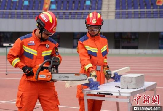 消防指戰(zhàn)員在進(jìn)行無齒鋸組裝。 張瑤 攝