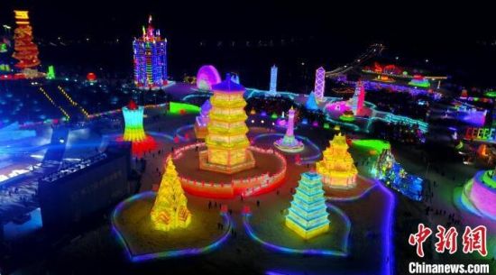 12月12日晚,長(zhǎng)春冰雪新天地開(kāi)門(mén)迎客。主題為“冰雪絲路 龍騰盛世”的長(zhǎng)春冰雪新天地園區(qū)占地面積達(dá)156萬(wàn)平方米,用冰量42.8萬(wàn)立方米、用雪量31萬(wàn)立方米,建設(shè)冰雪建筑120組。