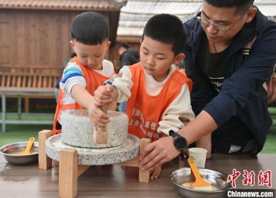 近來,鄉(xiāng)村農(nóng)事研學(xué)活動在長春頗受歡迎。4月27日,在長春市陳家店村,萌娃們紛紛化身“小農(nóng)人”,通過磨豆?jié){、采摘水果、參觀勞作工具等活動體驗農(nóng)事樂趣,親近自然。