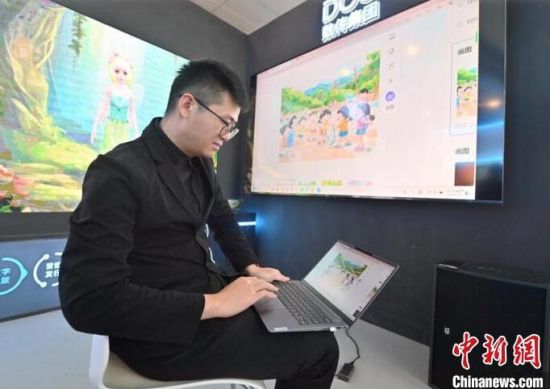 工作人員在展示AI智能編輯部。 張瑤 攝