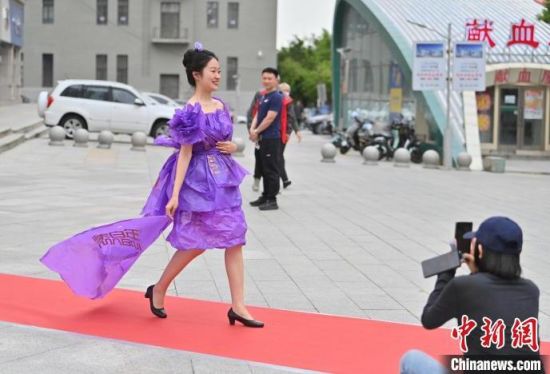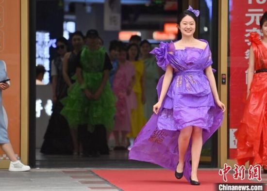 6月5日,吉林長春,模特身穿綠色環(huán)保時裝走秀。值此世界環(huán)境日來臨之際,長春開展“塑制霓裳·環(huán)保領航”綠色環(huán)保時裝秀表演活動。民眾將廢舊的報紙、塑料袋等廢舊物品變成了美麗的衣裳,宣傳環(huán)保意識。張瑤 攝