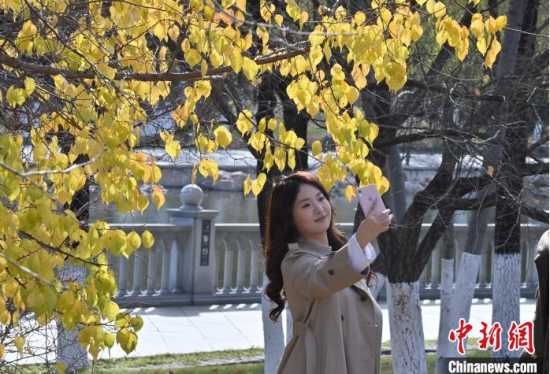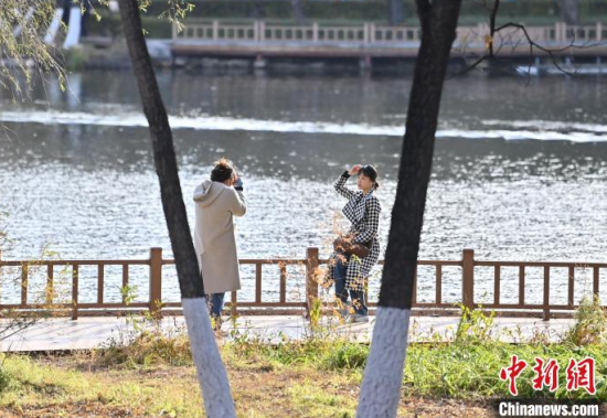 10月20日,吉林長(zhǎng)春,市民外出賞秋景。秋色漸濃,長(zhǎng)春各處秋景怡人,吸引大量市民利用周末時(shí)間踏葉賞秋,享受秋日美好時(shí)光。中新社記者 張瑤 攝