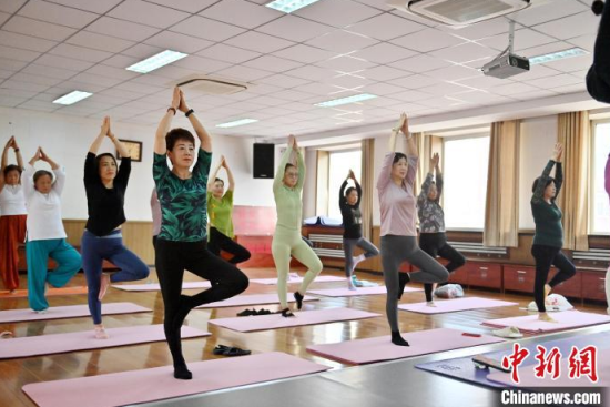 10月24日,在位于吉林長(zhǎng)春的吉林省老年大學(xué),老年人在練習(xí)瑜伽。近來(lái),越來(lái)越多老年人在運(yùn)動(dòng)中煥新生活,瑜伽也不再是年輕人的專屬。在老年人的眼中,瑜伽鍛煉了體態(tài)和精神面貌,讓他們看起來(lái)“越來(lái)越年輕”。中新社記者 張瑤 攝