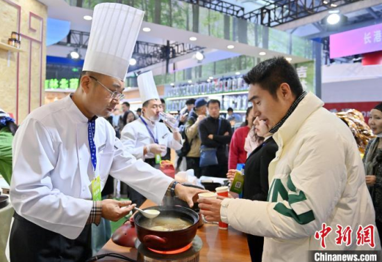 12月7日,吉林長(zhǎng)春,市民在品嘗人參藥膳。當(dāng)天,2024長(zhǎng)春國際醫(yī)藥健康產(chǎn)業(yè)博覽會(huì)開幕,在人參展區(qū),展示了百年野山參、人參藥膳及人參深加工產(chǎn)品。中新社記者 張瑤 攝