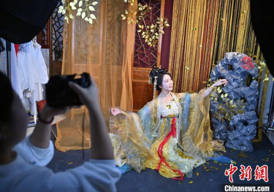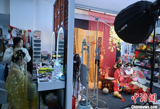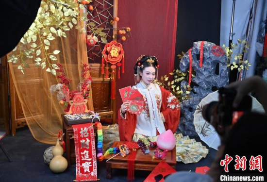 1月6日,吉林長春,市民在拍攝漢服寫真。店家介紹,農(nóng)歷蛇年春節(jié)將至,漢服寫真成了顧客新需求,店家特推出百梅迎春、金蛇賀歲、招財進寶等主題,深受市民喜愛。中新社記者 張瑤 攝