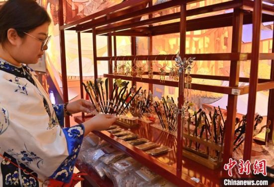 2月18日,在長(zhǎng)春市一家商場(chǎng)內(nèi),商家在陳列簪子。中新社記者 張瑤 攝