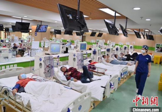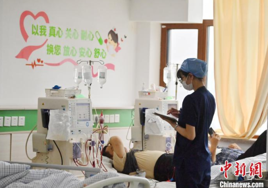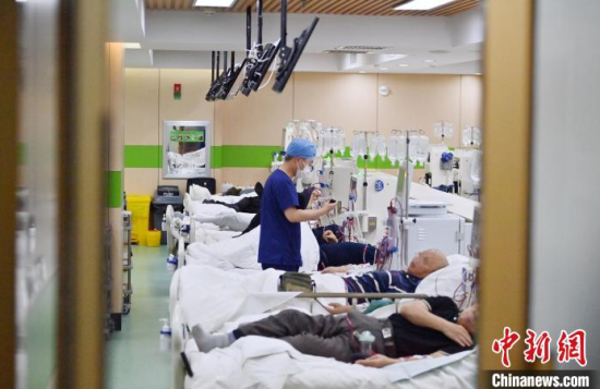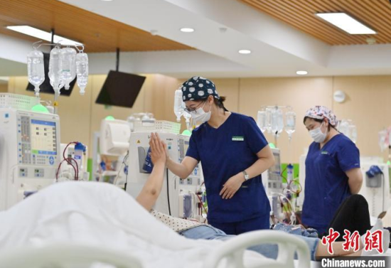 5月9日,長春中醫(yī)藥大學(xué)附屬醫(yī)院腎病科透析室內(nèi),護(hù)士在為患者進(jìn)行透析治療。該科室日均接診近200名患者,每位患者的透析過程都需要數(shù)小時(shí)。治療期間,護(hù)士們會全程密切監(jiān)測患者生命體征,隨時(shí)準(zhǔn)備應(yīng)對突發(fā)狀況。多年來,醫(yī)護(hù)團(tuán)隊(duì)以專業(yè)的技能和細(xì)致的關(guān)懷,持續(xù)為患者的生命健康保駕護(hù)航。中新社記者 張瑤 攝