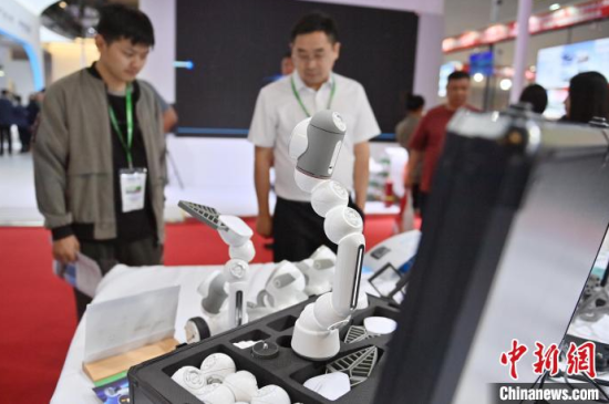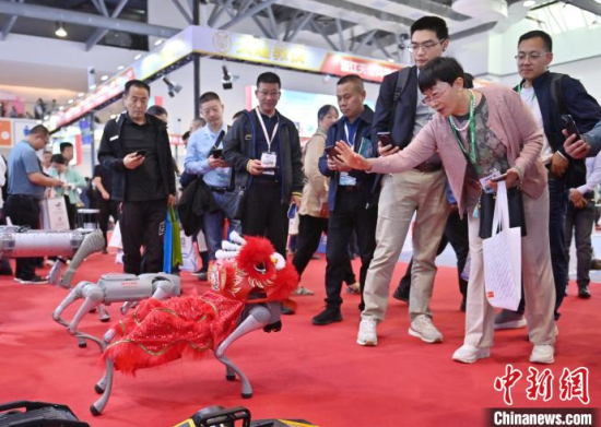 5月23日,第63屆高等教育博覽會(huì)(簡(jiǎn)稱“高博會(huì)”)在長(zhǎng)春開(kāi)幕。本屆高博會(huì)由展覽展示與特色活動(dòng)兩部分組成。其中,展覽展示面積12萬(wàn)平方米,參展院校和企業(yè)6000余家。圖為高博會(huì)展覽現(xiàn)場(chǎng),智能人形機(jī)器人吸引參觀者。中新社記者 張瑤 攝