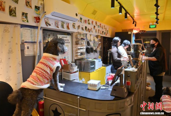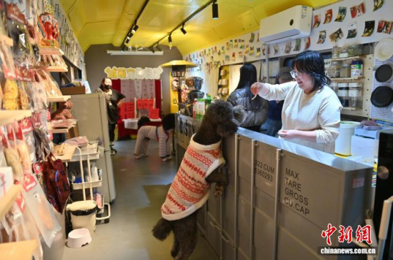 2月11日,吉林長春,小狗在火車車廂主題寵物餐廳旁經(jīng)過。該餐廳集寵物餐飲、游樂與社交功能于一體,為寵物打造沉浸式用餐體驗。臨近春節(jié),后廚正加緊趕制寵物年夜飯,新年禮盒供不應求,不少寵主早早預訂“車廂座位”。中新社記者 張瑤 攝