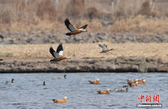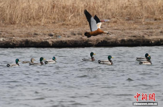 3月13日,長春市伊通河上演“春江水暖鴨先知”的生動景象。隨著氣溫回升,冰封的河面逐漸融化,近千只赤麻鴨、綠頭鴨等越冬水鳥齊聚未封凍的水域。它們時而在水中嬉戲覓食,時而在藍(lán)天列隊飛翔,與尚未消融的冰雪相映成趣,為城市增添了勃勃生機(jī)。中新社記者 張瑤 攝