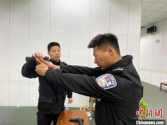 手槍擊發(fā),子彈火藥爆炸后散發(fā)的酸臭味也會迎面而來!澳阋晳T槍的所有細節(jié),才能做到真正的槍人合一!焙庵颐髯屇贻p人舉槍,他則用力去觸碰對方的槍械,以強化射擊時的抗干擾能力。