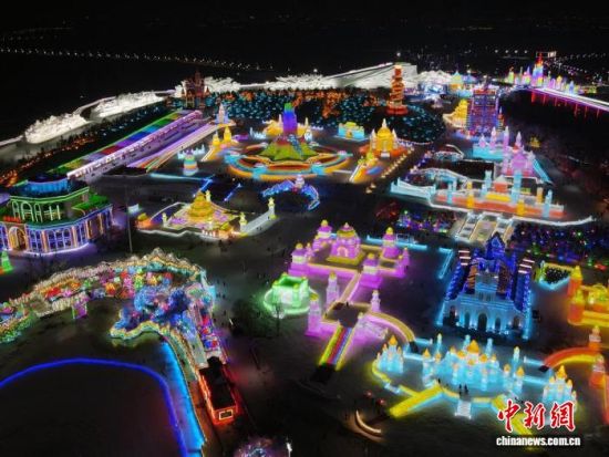 鳥瞰長(zhǎng)春冰雪新天地夜景。(資料圖) 張瑤 攝
