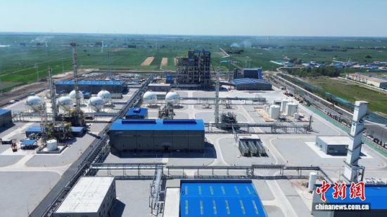 2025年7月15日,吉林白城,上海電氣洮南市風(fēng)電耦合生物質(zhì)綠色甲醇一體化示范項目投產(chǎn),其通過“綠電制氫+秸稈氣化”合成綠色甲醇。(資料圖) 王闖 攝